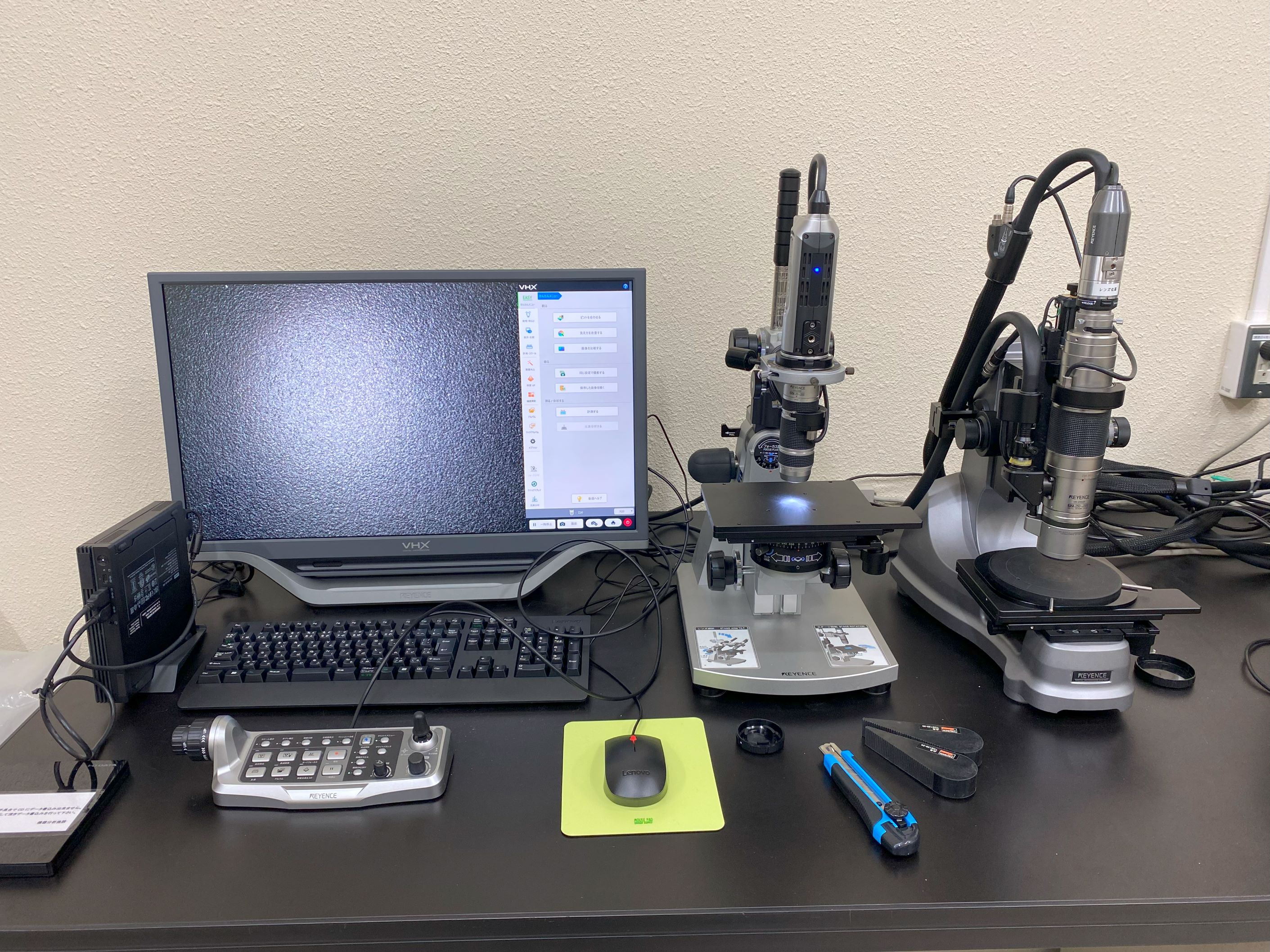 | 装置の概要 | カメラ部と本体で構成されており、カメラ部には高画素のカラーCCDと照明を内蔵し、各種レンズを組み合わせて画像を取り込む。 本体には「表示」「記録」「計測」などの機能が備わっており、スタンドアローンで観察・解析・データ処理が簡単にスピーディーに可能。 シームレスに観察できるため、試料の形態・形状(固体、粉末、液体)を問わず観察が可能。 |