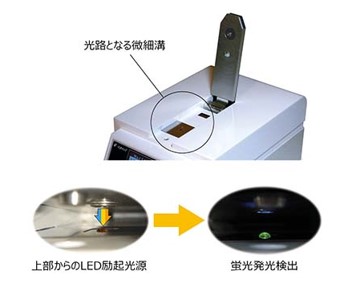 | 装置の概要 | 微量のサンプル(1μl)での正確な測定を実現できる吸光・蛍光対応の微量吸光・蛍光光度計 ● 吸光度測定 核酸(DNA, RNA) タンパク質(A280, Lowry, BCA, Bradford法) ● 蛍光測定 2種類の励起用LED(UV、白色)を搭載しているので様々な蛍光色素に対応 |