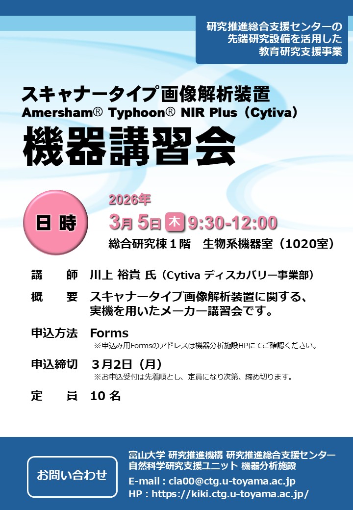 富山大学設備サポートセンター整備事業キックオフシンポジウムが開催されました‼ くわしくはこちらをご覧ください。[...]
